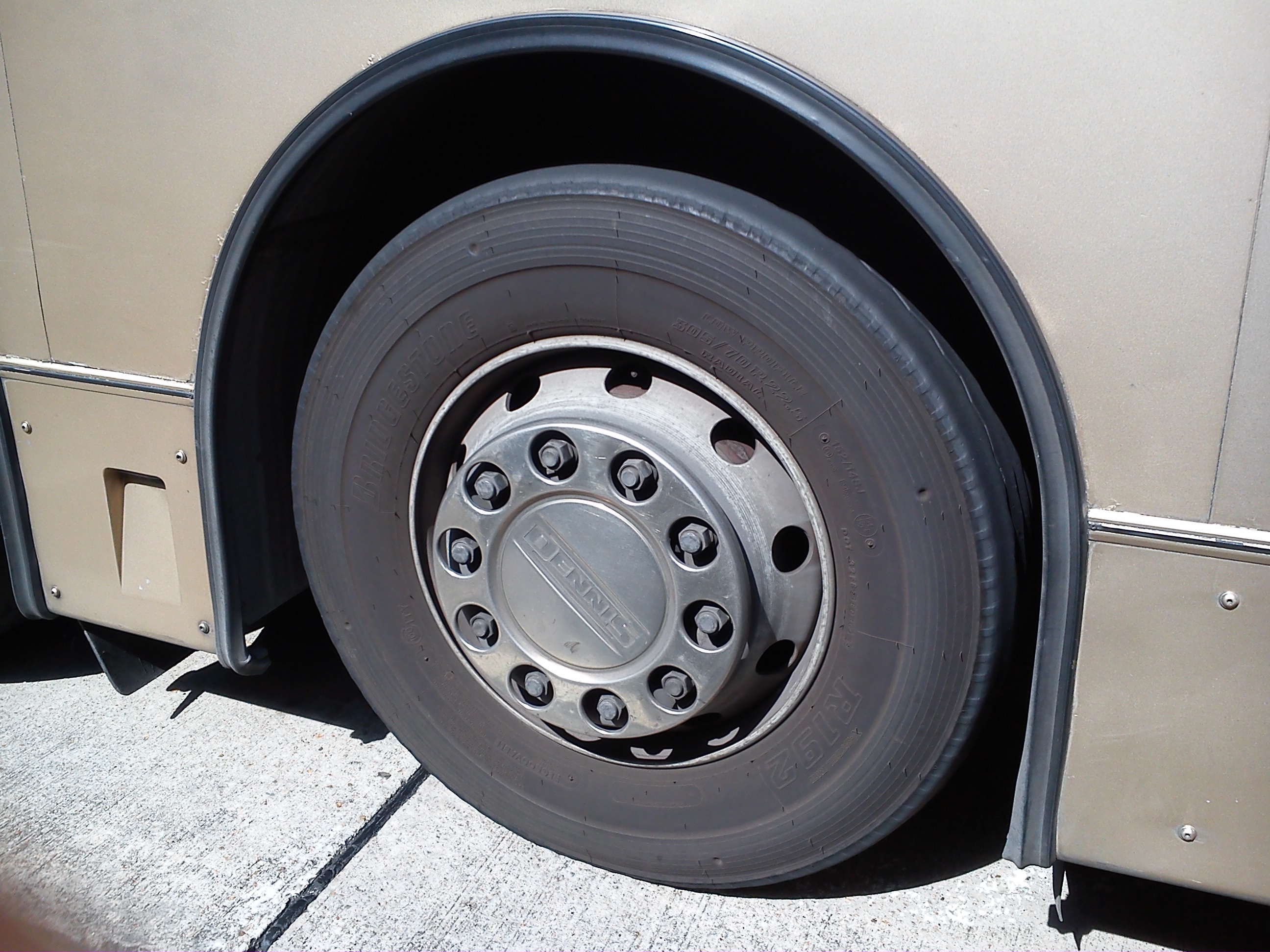 於1999年或之前出廠的丹尼士三叉戟,採用五個大孔的22.5吋外軨,輪胎尺寸亦清楚標明為305/70R 22.5