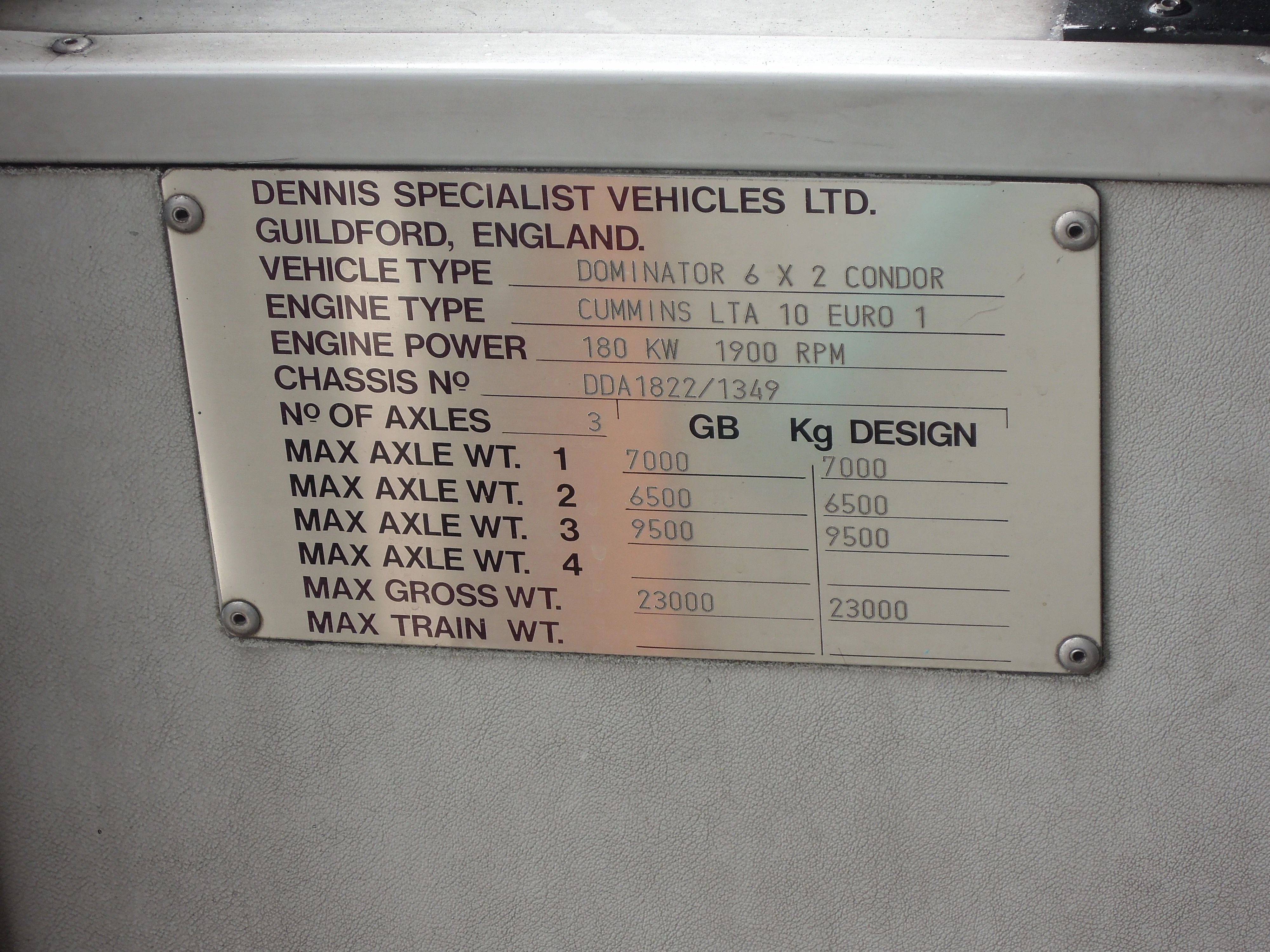 丹尼士車廠視巨龍/禿鷹型為統治者型的一款衍生型,由車輛前門側的出世紙可見,銘牌上刻有Dominator 6X2字樣。本車型可配上吉拿或康明斯引擎,配以Voith DIWA、DIWA.2、DIWA.3或ZF Ecomat波箱。