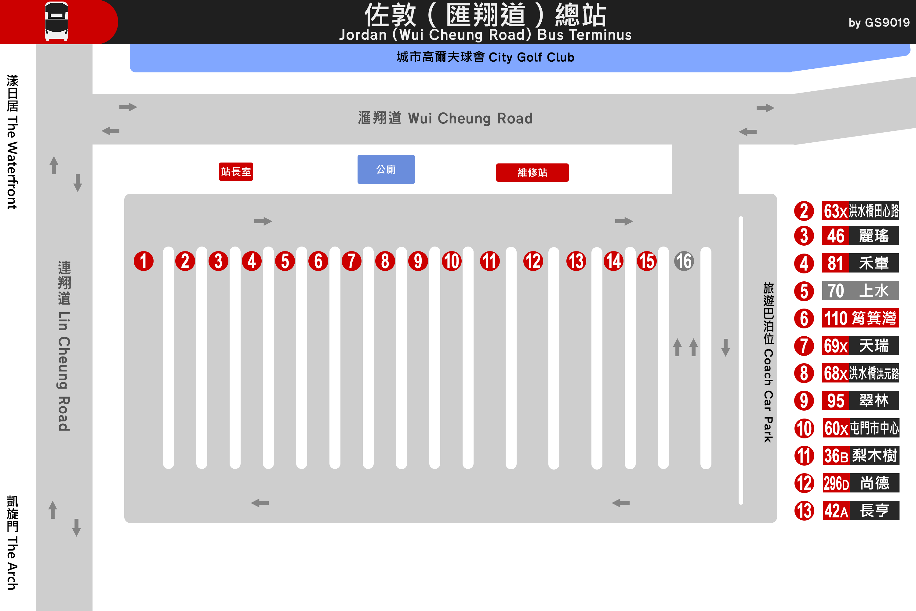- ↑ 九龍巴士(一九三三)有限公司,〈九巴36B, 42A, 46, 60X, 63X, 68X, 69X, 81, 95, 110及296D線更改總站位置〉[新聞稿],2009年12月14日。