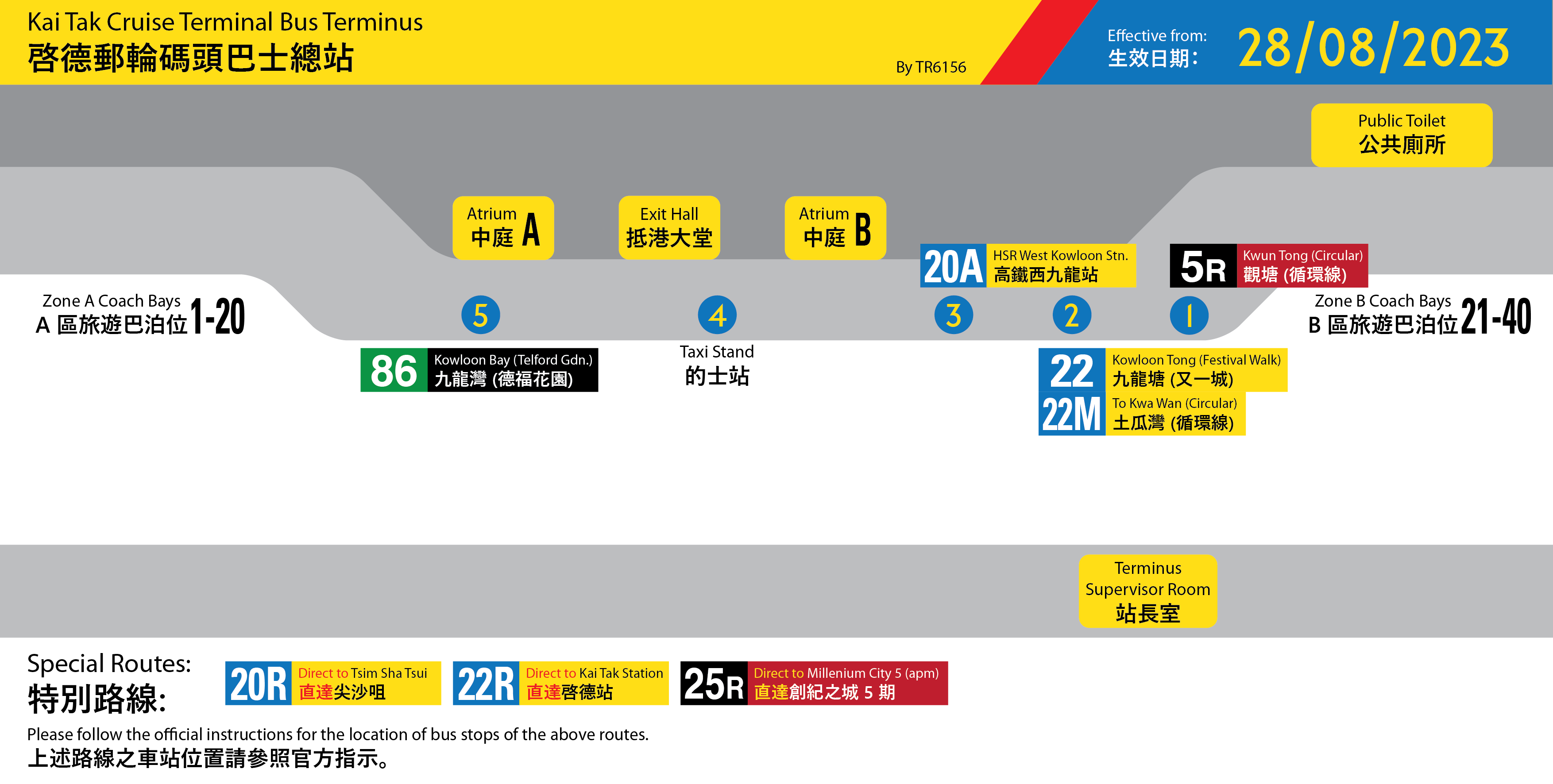 - ↑ 城巴有限公司,〈城巴開辦全新20R號線 由啟德郵輪碼頭直達尖沙咀旅遊熱點〉[新聞稿],2023年8月16日。