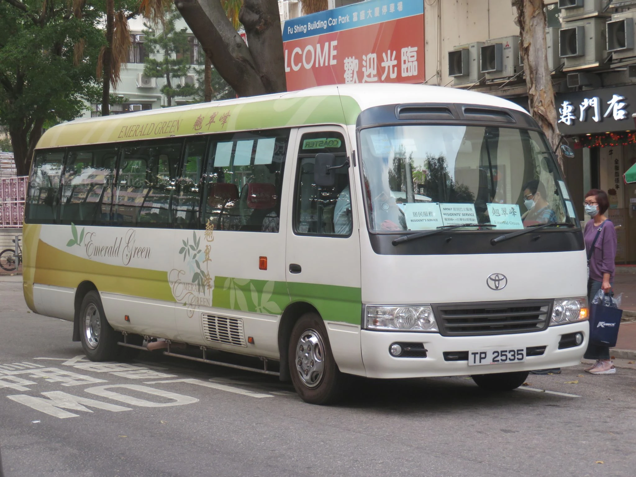 此路線使用1輛28座位豐田Coaster XZB59R單層巴士(車牌TP2535)行走。