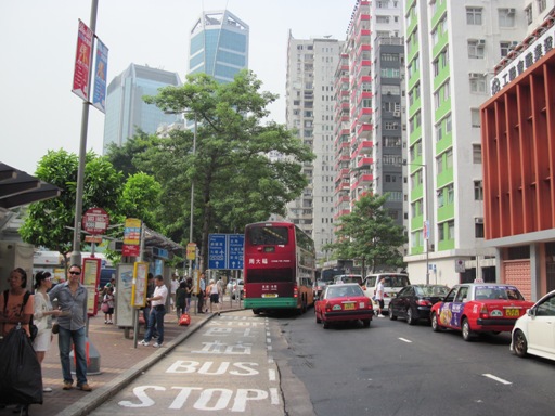 本港各主要巴士站大多是「中途站」(En-route Stop),在路面畫有虛線長方形作界線,髹上白色「巴士站」及英文"BUS STOP"道路標記,讓巴士停靠上落客,被劃分為巴士站的範圍依例不准其他車輛停車,不論有否劃上黃線。[9]