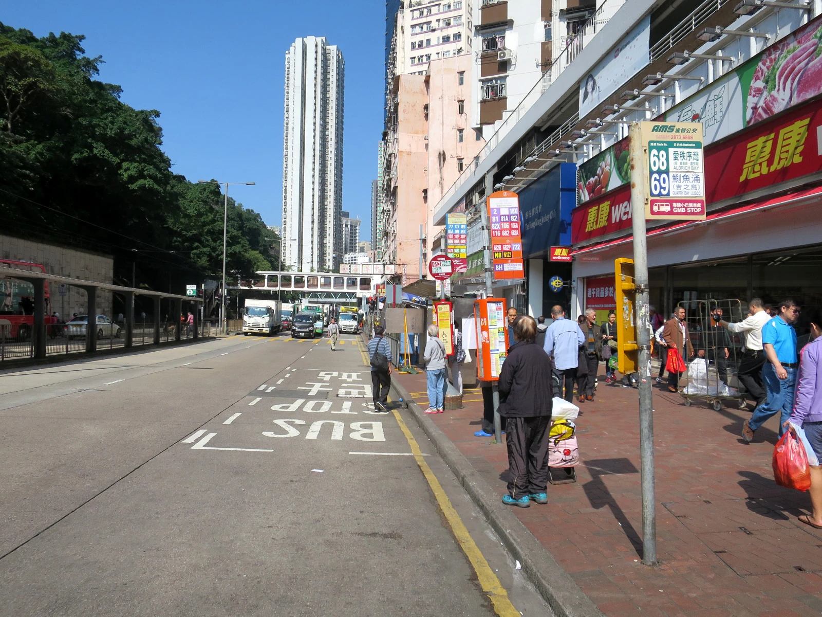 - 東行站位於新威園、萬利廣場外,鄰近太古坊、途經路線主要前往西灣河、筲箕灣、柴灣等地;