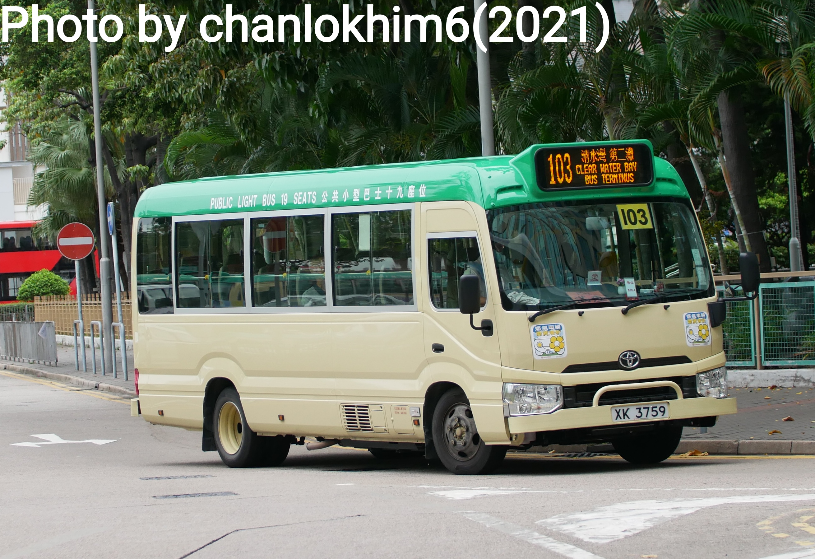 新界專綫小巴路線103,由豐兆投資有限公司(客運營業證編號8590C)營辦,來往觀塘碼頭及清水灣第二灘,途經將軍澳隧道、坑口(寶寧路、坑口道)及清水灣道(銀線灣至大坳門)。
