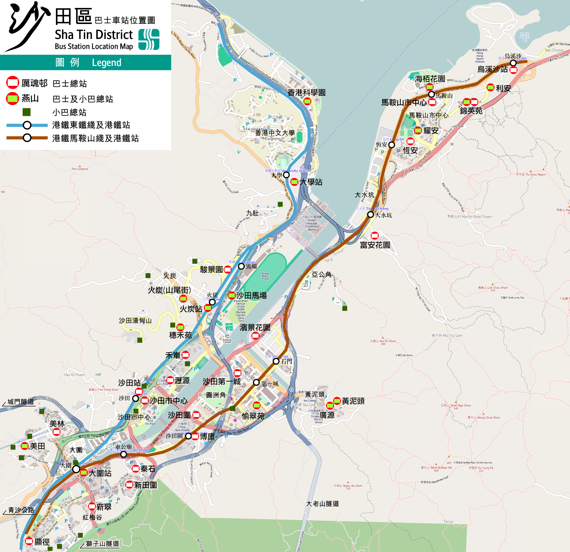 - 沙田馬場總站:位於沙田馬場入口旁。