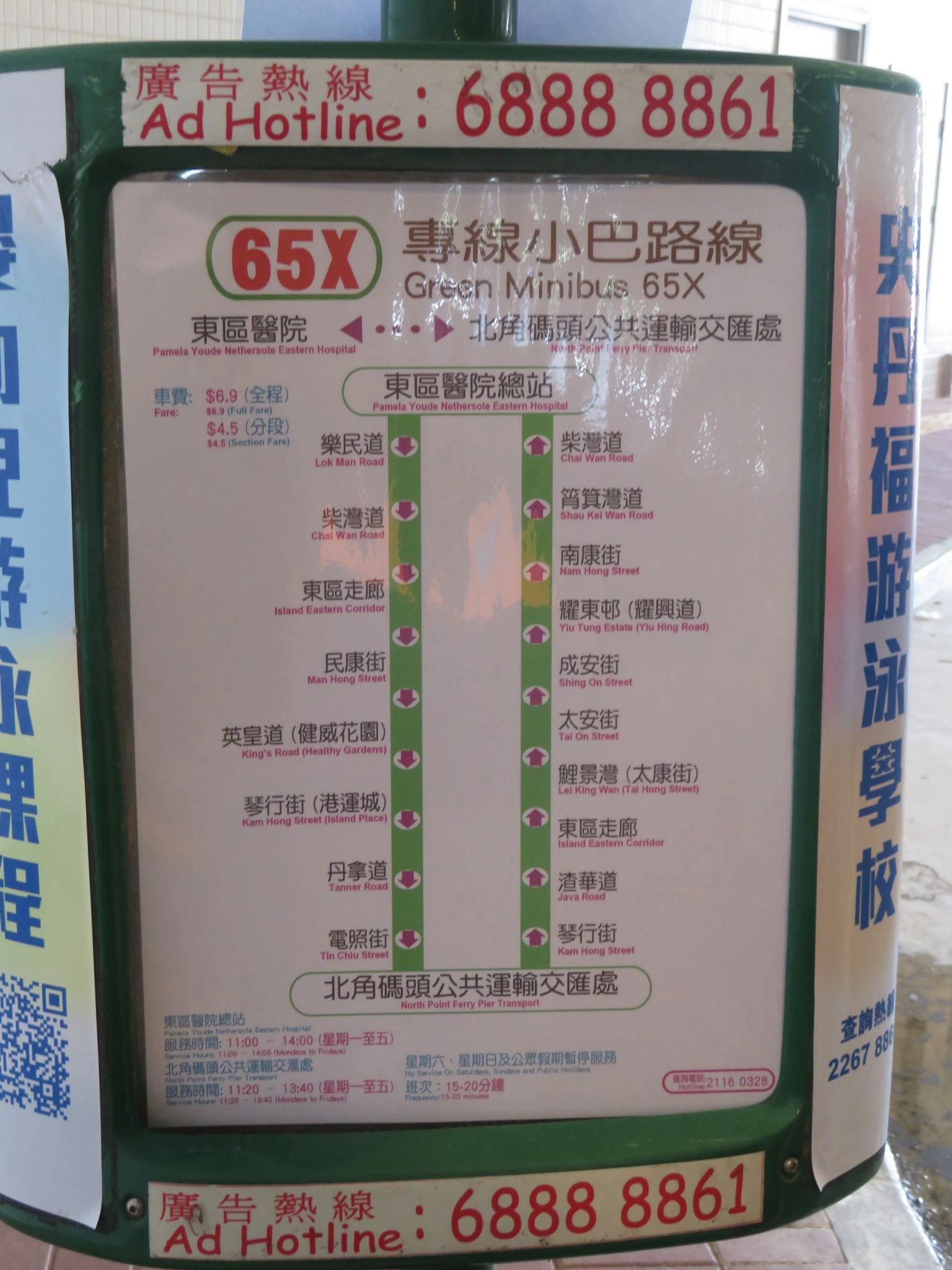 | 港島專綫小巴65X線(東區醫院→北角碼頭) | ||||