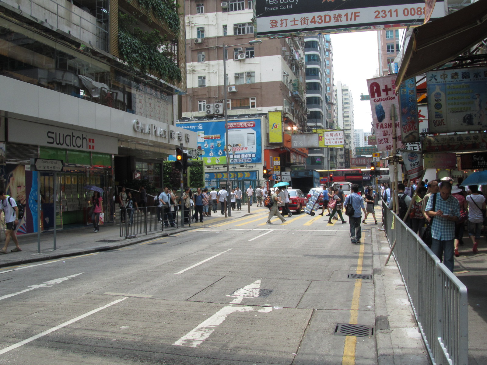 登打士街被彌敦道分為兩截,以東路段屬單向西行;以西路段屬則只准單向東行。