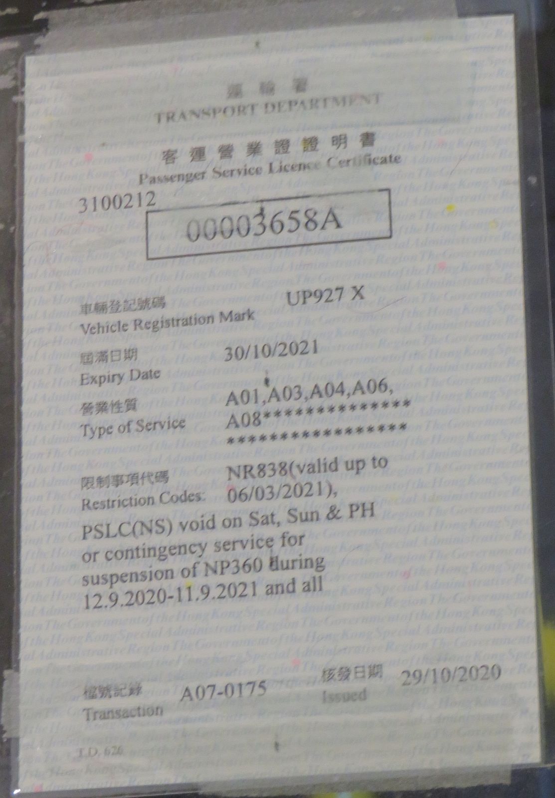 - 複合交通服務(A07),運輸署多年來未有批出此類批註